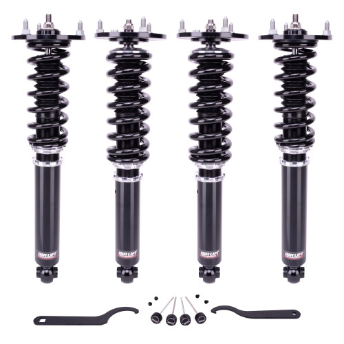 Kit Includes: Complete Coilover kit with set of (4) front and rear dampers, (4) coil springs, (2) spanner wrenches, (4) damping adjustment knobs and (4) damping knob grommets.